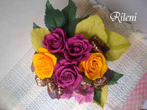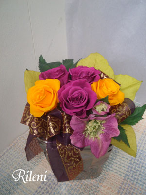 プリザーブド:ローズ、リーフ アート:クリスマスローズ、リーフ その他:リボン
