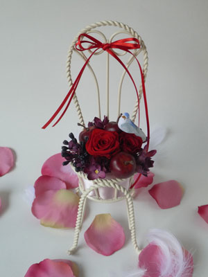 プリザーブド:バラアート:小花、リンゴその他:小鳥、リボン